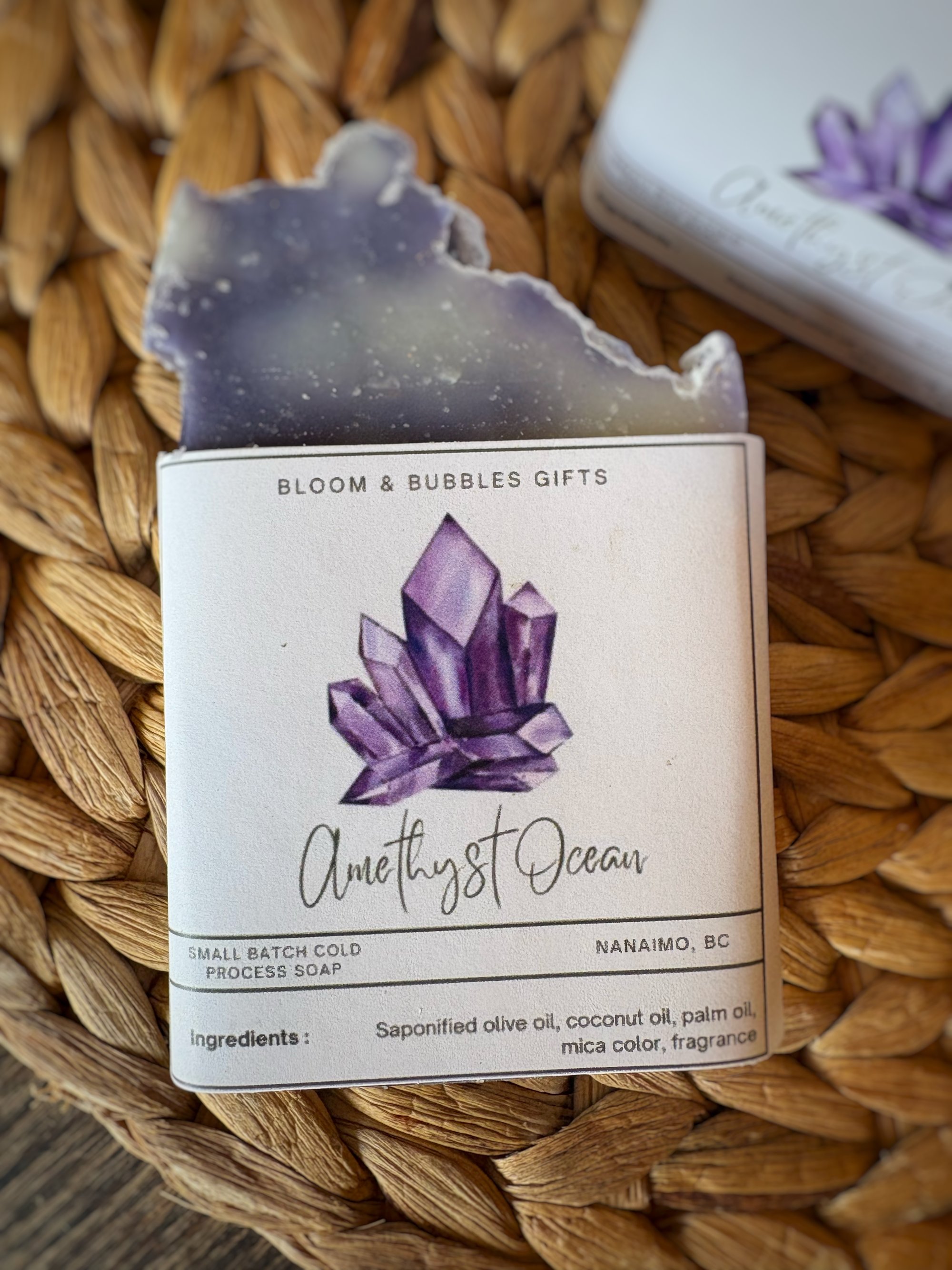 Immerse yourself in the calming, coastal energy of Amethyst Ocean, a handcrafted cold process soap inspired by rolling waves and peaceful shorelines. This bar blends the earthy depth of patchouli, the fresh sea-spray sweetness of Oceana, and the soothing floral notes of lavender to create a scent that’s grounding, refreshing, and beautifully balanced.