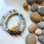 Inspired by the calm of the sea and the strength of the earth, the Ocean Grounded Bracelet blends soothing light aquamarine stones with natural wood and black lava beads.